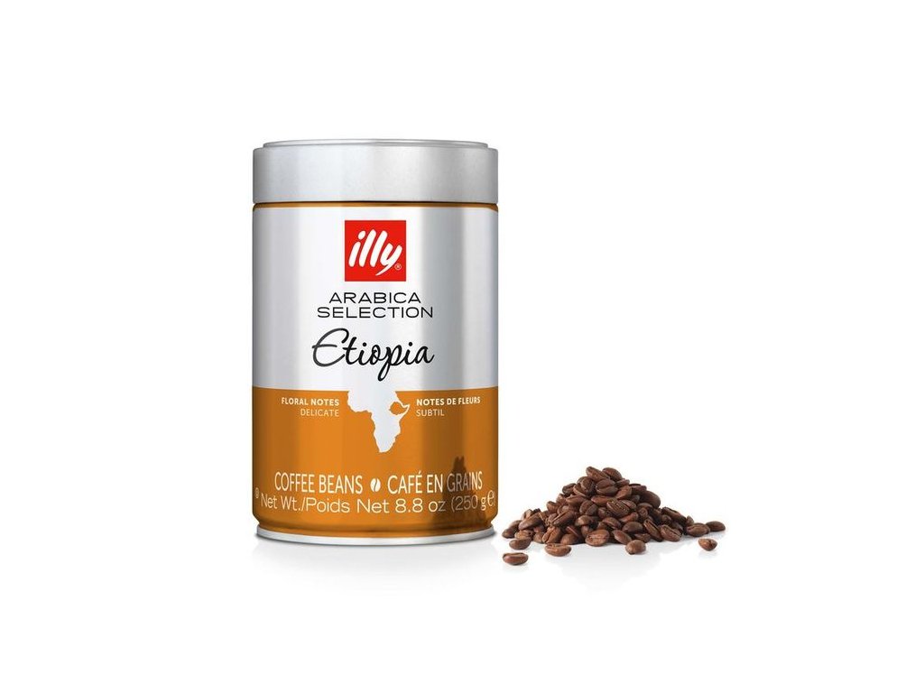 Az Illy Ethiopia kávébabok 250 g-os fémdobozba csomagolva finom aromával és virágos jegyekkel rendelkeznek.